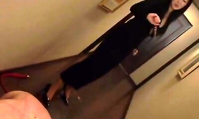 Japanese femdom fun with horny nympho whose wooly cooter needs polishing
