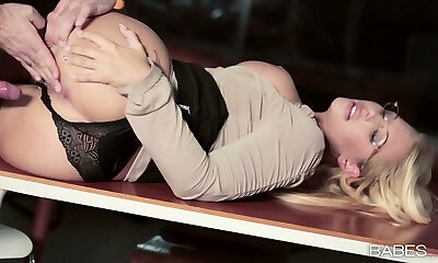 Wonderful bosomy blonde secretary lets manager fuck her cunt mish on table