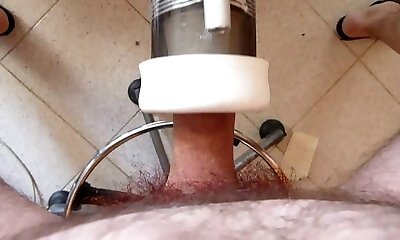 Uncut Pipe in Masturbation Machine with cumshot