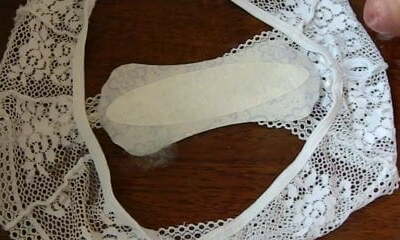 Cumshot on Moms Lacy Underpants and Pantyliner
