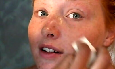 Hot redhead woman with pale skin Dolly Little pulverized well in bedroom